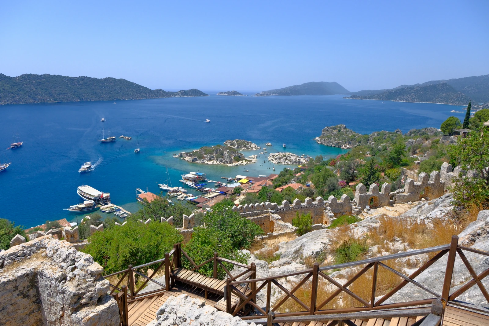 This remarkable Lycian settlement dates back more than 2,400 years and slipped beneath the sea after a series of earthquakes between the 2nd and 8th centuries. As you glide along the shoreline, you will see ancient walls, staircases, and harbours lying just below the surface, framed by the dazzling turquoise waters of Kekova Bay along the Mediterranean coast.