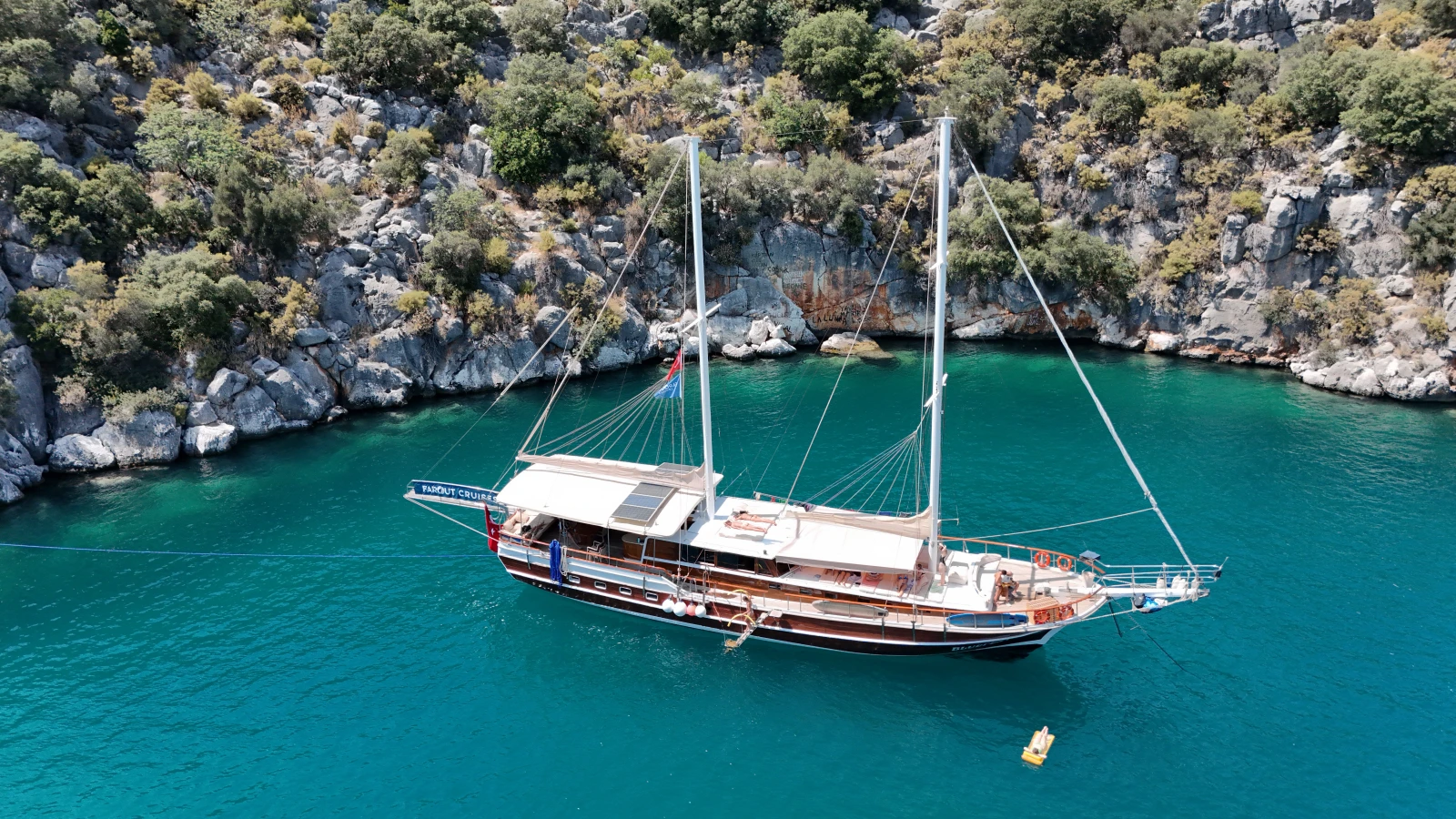 Today our guests will wake up outside in the beautiful Aquarium Bay of Kalkan for a morning swim and breakfast.