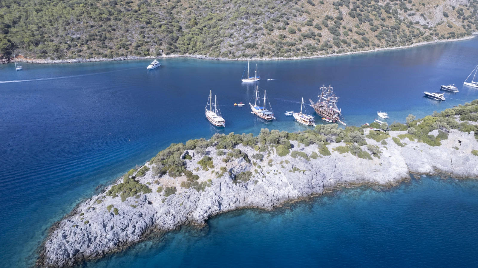 Guests will need to be at Fethiye Harbour at 10:00 am. If you need directions, our staff will be happy to help. Following check-in, we will board the gulet for a short briefing. The gulet will then depart Fethiye harbor and cruise to the first stop, Butterfly Valley—time for swimming, lunch, and an optional hike up to the waterfall. Butterfly Valley is known to be home to more than 136 kinds of moths and butterflies; however, they can be challenging to spot on the hotter days.