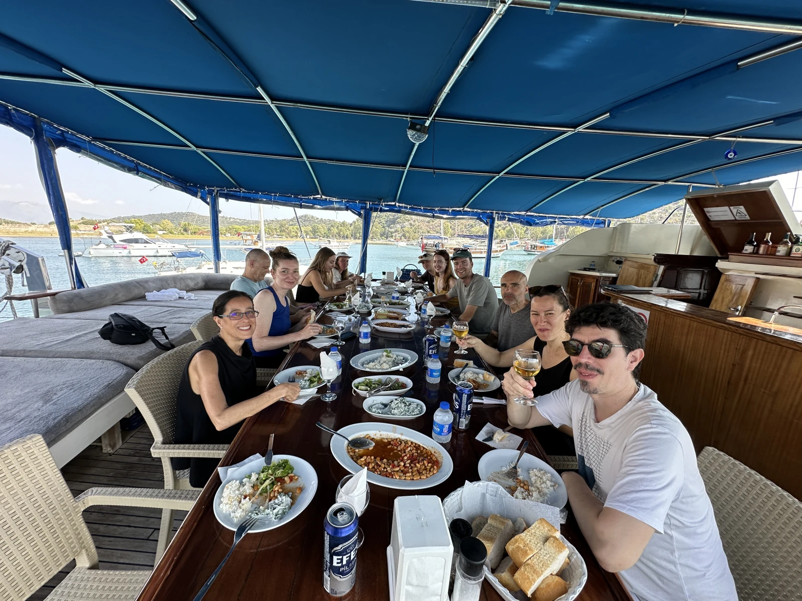 After breakfast, the captain and crew will have the gulet cruise to Kumlubuk Bay early in the morning. We will spend the morning here, on one of the most extensive stretches of beach on the peninsula. Build a sandcastle, sunbathe, or swim – the morning is yours to relax and lunch will be served. Once back on the gulet, we will motor onto Cennet Island and anchor for five o’clock tea time. We will arrive at Marmaris Harbour at 4:00 pm. Overnight stay will be in Marmaris. Tonight you'll have the chance to see more of Marmaris, the city center, and shops and experience the nightlife with your new friends from the blue cruise. This last night onboard, you will stay in port here in Marmaris. (B, L,)