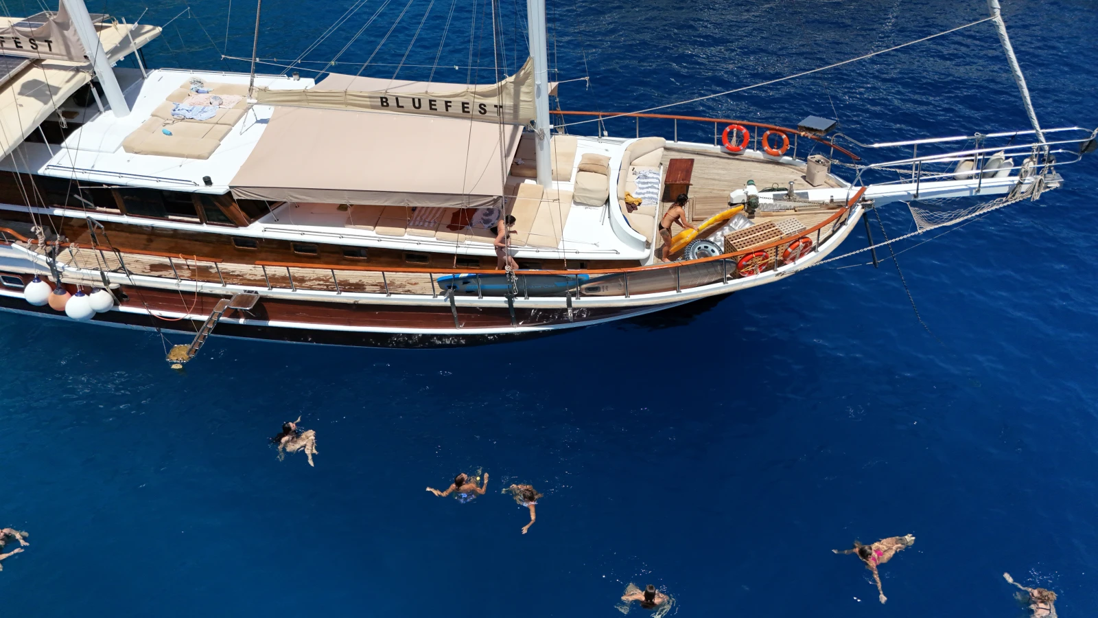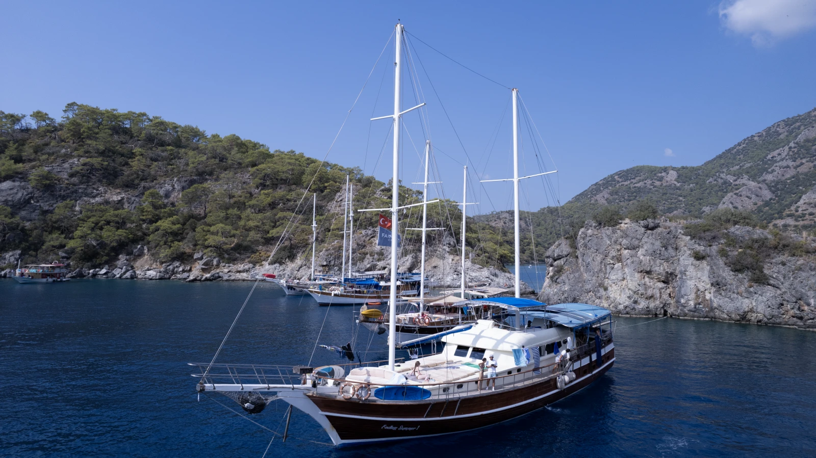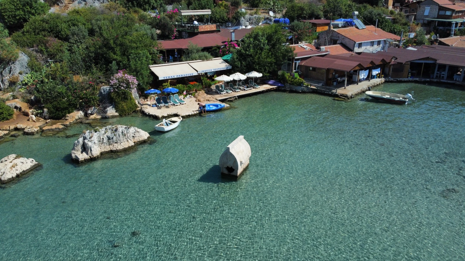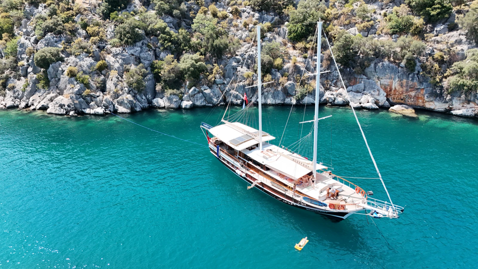As you depart from Kas Harbour, you will cruise into the clear, open waters of the Mediterranean, offering your first views of the rugged coastline, dotted with hidden bays and rocky headlands. This is your first opportunity to relax on deck, take in the scenery, and ease into the rhythm of your Turkish blue cruise experience.