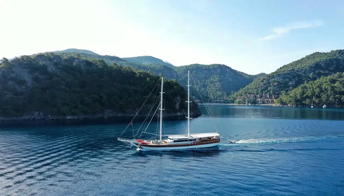 This morning, an early cruise to Porto Ceneviz or the Bay of Sazak. These places have sheer cliffs dropping into the sea, and the bays are entirely deserted. Enjoy the seclusion and peace. After lunch, we will anchor at Phaselis Bay. You can walk around the antique town on the seashore if you wish. And visit the well-preserved ancient city of Phaselis. The three harbors here were once major commercial centers. The ruins of aqua ducts, baths, a theatre, Hadrian's Gate, and the Acropolis reveal the city's historical importance.