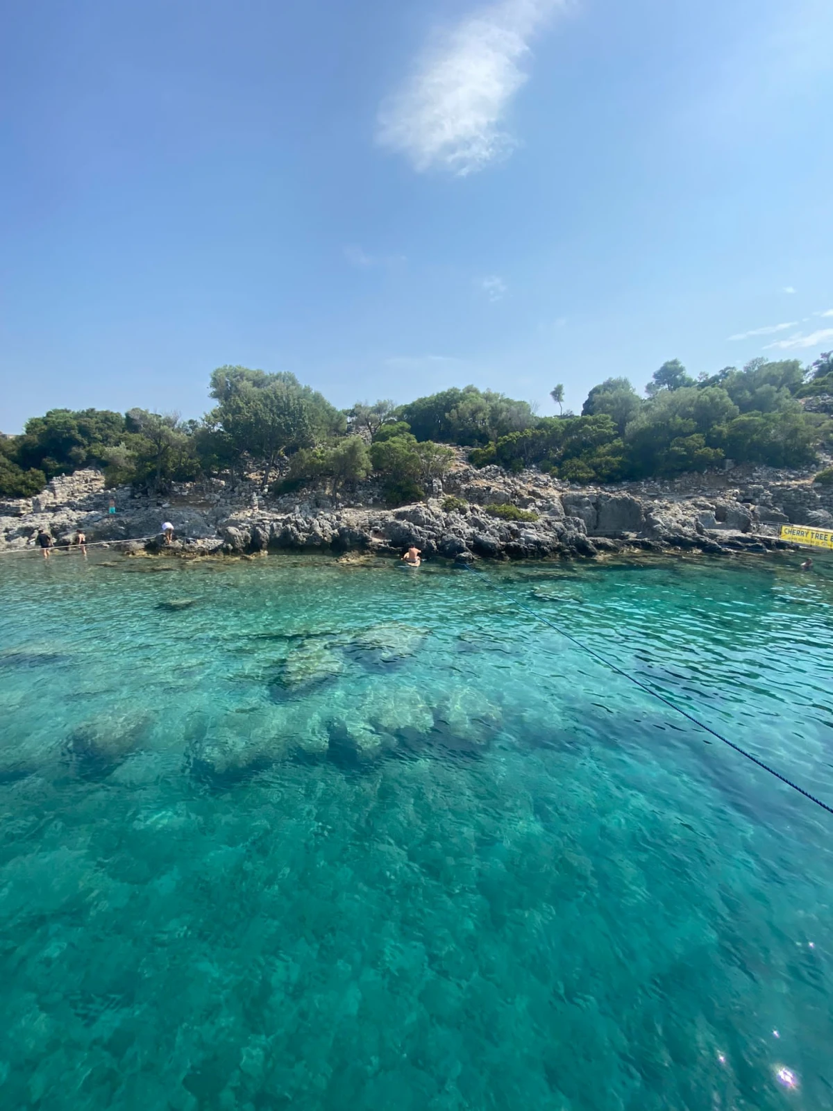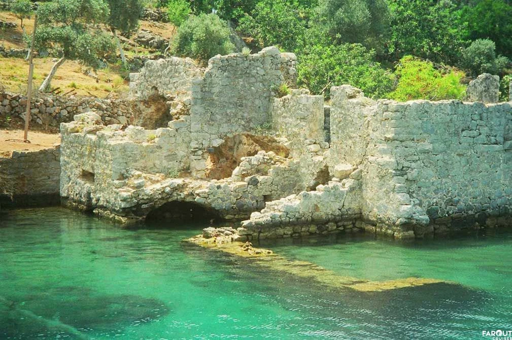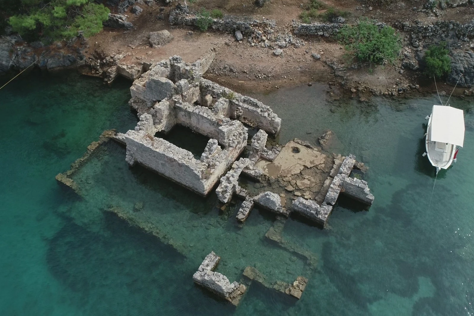 You will anchor at Sunken Bath (Cleopatra Bay) for breakfast and a swim break. This bay is known for the partially submerged ruins of an ancient bathhouse visible beneath the water, and local legend suggests it was associated with Cleopatra. The site lies within a pine-covered cove, and the remains of walls and columns can still be seen just below the surface, making it a unique historical swimming spot.