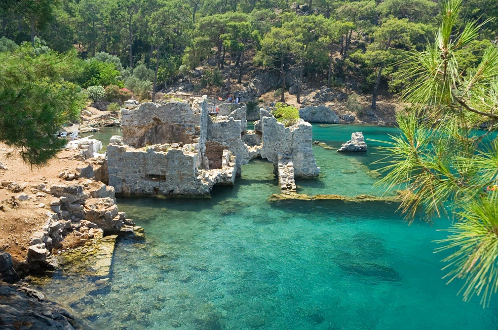 This morning, you will visit Bedri Rahmi Bay, named after the famous Turkish artist Bedri Rahmi Eyuboglu. The bay is one of the most popular in the Fethiye region. It was named after the artist following his visit in 1974, when he painted a fish figure on a rock, which can still be seen today. With plenty of time to swim in the crystal-clear water, you can also swim to the small beach and discover ancient Lycian ruins hidden among the trees.