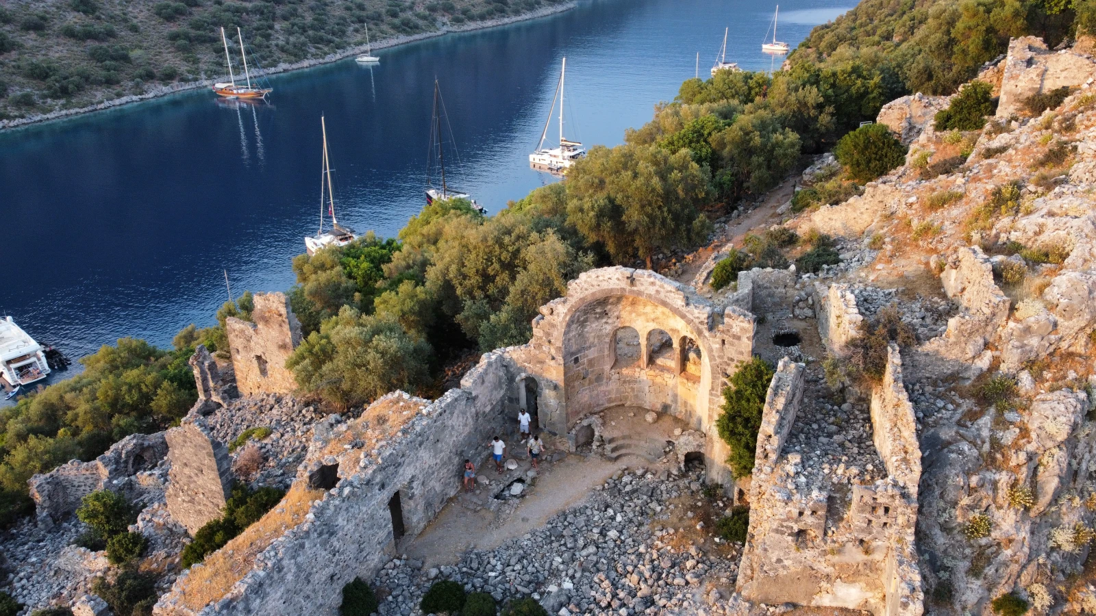 After breakfast in the tranquil Kocakari Bay, you will sail over the mysterious Sunken City of Kekova, one of the most fascinating highlights of a Blue Cruise Turkey route. This remarkable site is a memorable part of your Sailing Turkey Adventure with Farout Cruises along the Mediterranean coast.