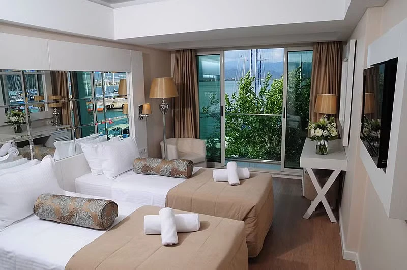 Alesta Yacht Hotel is a sophisticated 4-star retreat located next door to the old town and opposite the main marina and ferry port and across the street from the scenic seaside boulevard. Within the surrounding streets, you can find plenty of quirky cafes, elegant restaurants and lively bars, or stroll along the seafront past the many yachts and gulets. Alesta is located just a few steps from the town centre and within an easy walk to all the main attractions including the Lycian Cave Tombs, ancient castle and Tuesday fruit and veg market, only 7 km from the Calis white-sand beach. Alesta Yacht Hotel offers luxury accommodation and superb views of Fethiye Bay.