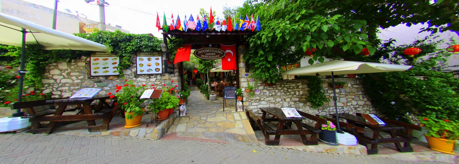 Boomerang Guesthouse offers a relaxed and social atmosphere, with helpful English speaking staff, rooftop terrace, garden seating, free breakfast and an onsite bar and restaurant serving a delicious mix of traditional Turkish and Chinese cuisine. Boomerang Guesthouse is the ideal place to meet other travellers and share your Turkish holiday experience. The Staff at Boomerang Guesthouse will be happy to arrange day trips to nearby towns, beaches and archaeological sights or help you book your tours and onward transport.