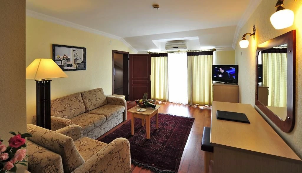 Each of Dinler Hotel's 188 rooms comes free Wi-Fi, air conditioning and central heating, LCD TV with satellite channels, electronic safe, make up table and mirror, and blackout curtains for a good night's sleep. 24-hour room service is available, and the hotel is child-friendly.