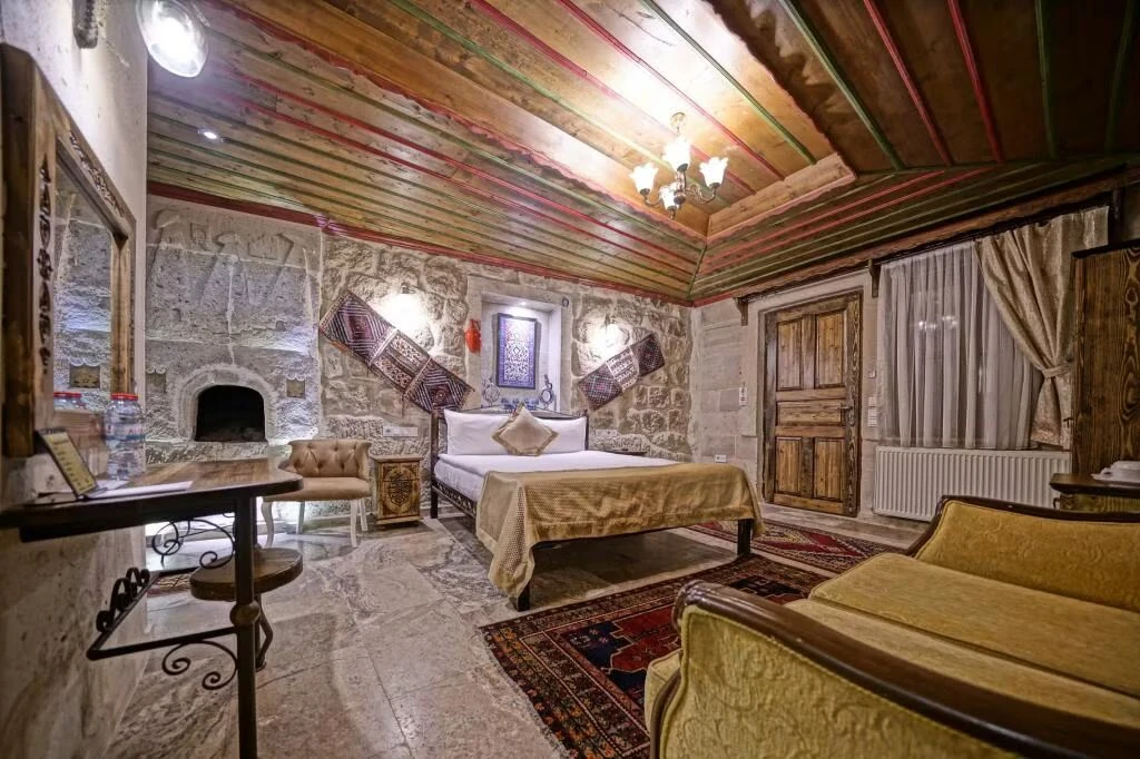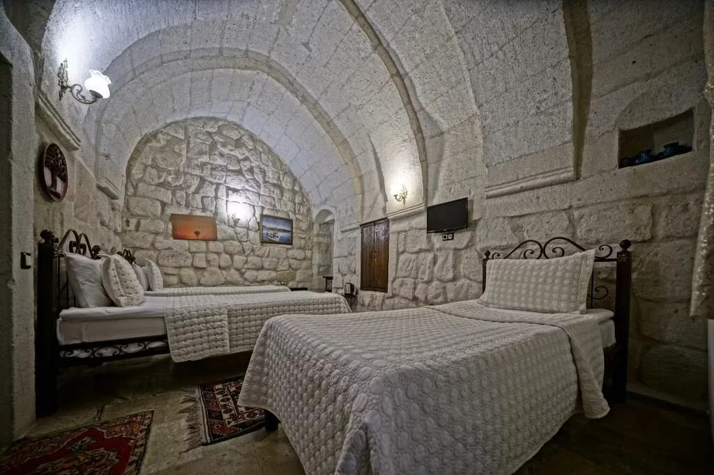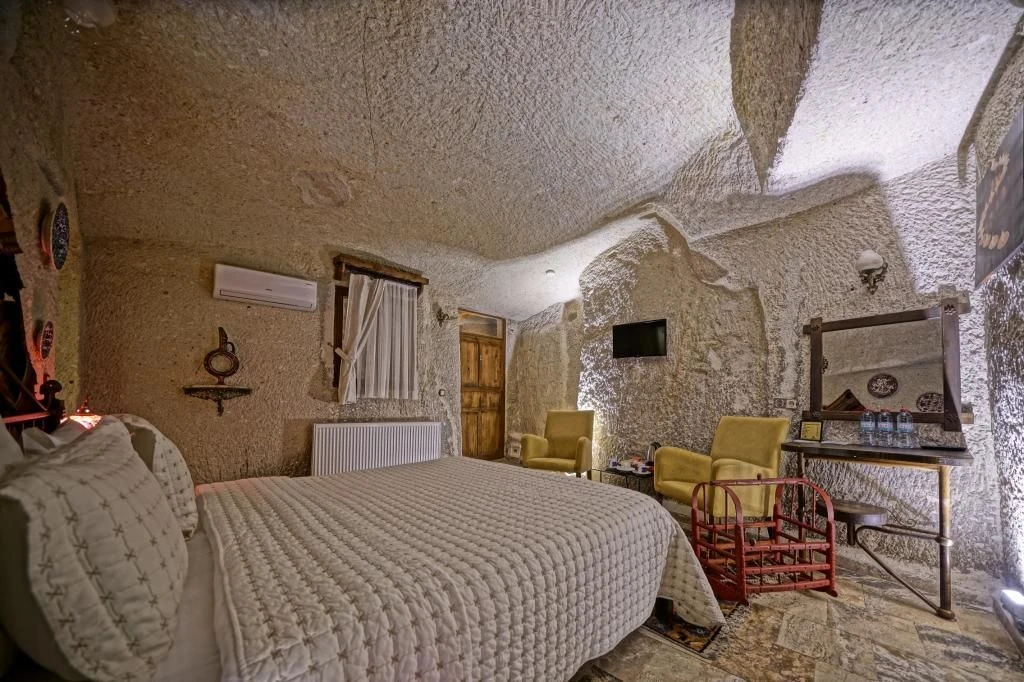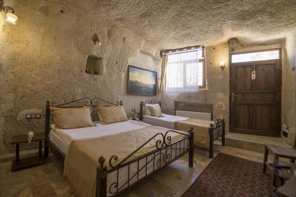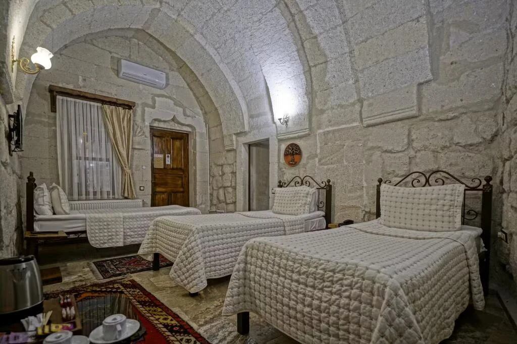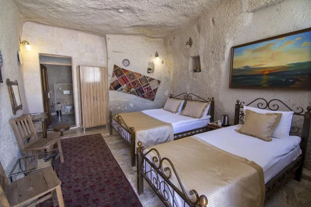 EMIT Cave Hotel offers clean and comfortable ‘cave rooms’ and ‘arch rooms’ at some of the best rates in Goreme, spacious twin, double, triple and family rooms, for up to 4 people, are available with modern elegant wooden furniture, en-suite bathrooms and showers. All rooms include minibar, tea & coffee making facilities, safe, free Wifi and central heating.