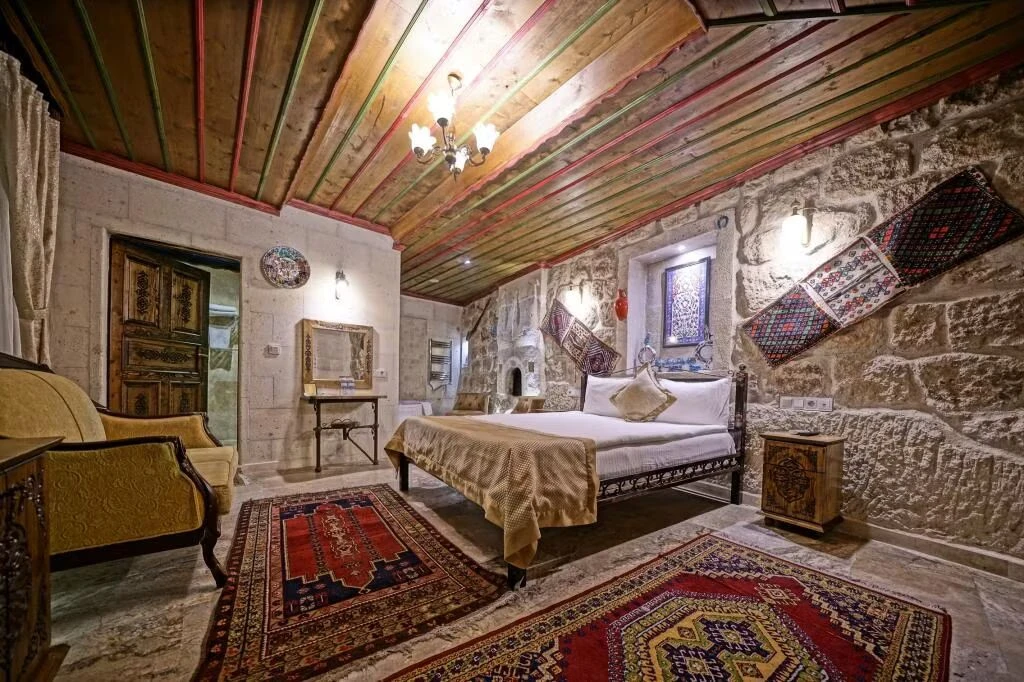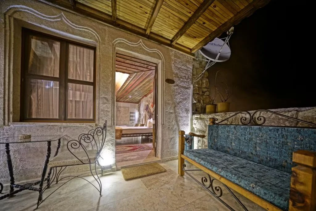 The Hotel is built into some of the original troglodyte caves, while the new stone terrace, where you can enjoy your free Turkish style buffet breakfast in the morning, compliments the contemporary, rustic style. The open terrace is one of EMIT Cave Hotel’s best features, offering guests a pleasant place to relax and enjoy the stunning views. The shared tv lounge is also a nice feature, you could meet and socialise with other travellers or snuggle up during the cool winter months.
