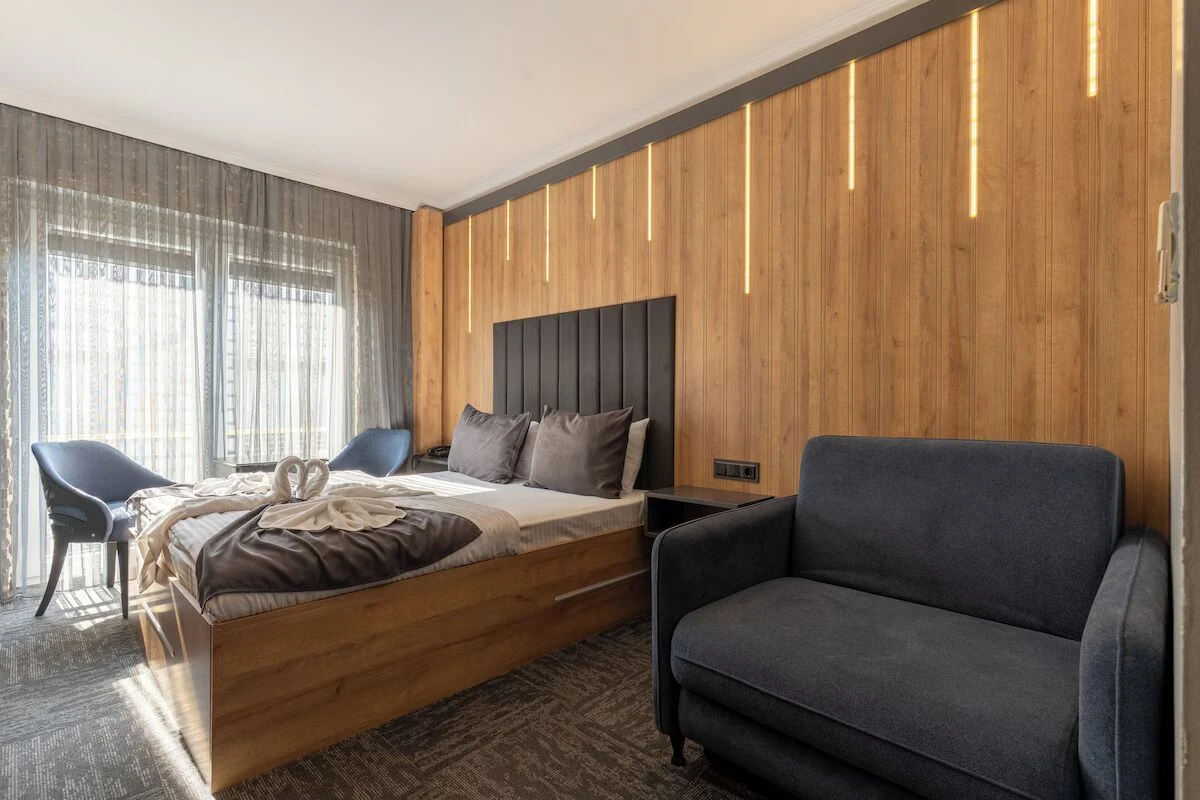 This wonderful hotel offers high quality to the standard hotel range with a beautiful view of the Black sea and modern style incorporating the natural colours in the region. The rooms include LED Tv, Airconditioning, electric kettle and all rooms include private ensuite bathrooms.
