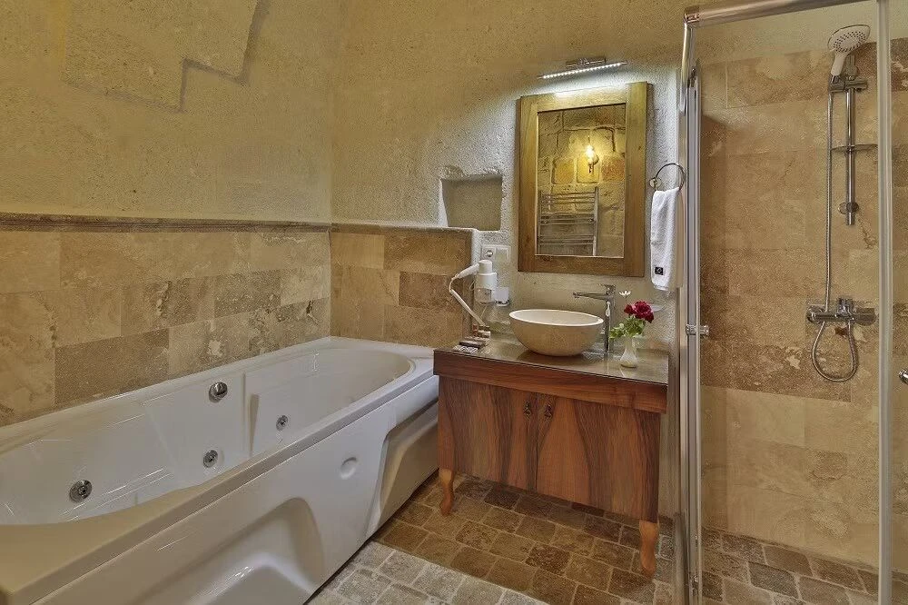 Jacob’s Cave Suites offers its guests memorable accommodation in original stone caves that have been carefully converted into comfortable suites. With a total of just 12 rooms, you will enjoy a cosy and familiar atmosphere. All suites are equipped with modern facilities including, free wifi, flat-screen satellite TV, phone, minibar and safe. Junior Cave Suites have 3 spacious areas, a seating area at the entrance, a comfortable sleeping area with fine wood furnishings and an en-suite bathroom with mini Turkish Hamam. Choose from Cave suites or Stone Arched Suites, Junior or Deluxe, Family or Honeymoon Suites. Some Suites also offer jacuzzi, balcony and mountain views.
