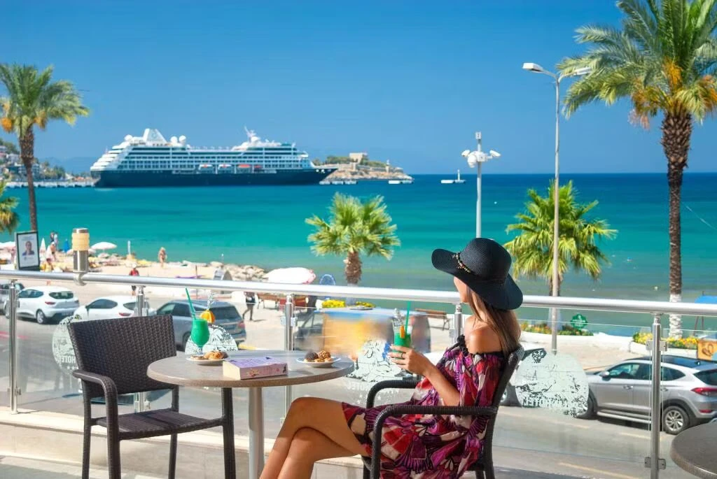 Palm Hotel is situated on Kusadasi beachfront, with a variety of cafes and restaurants that serve local and international cuisine. As the hotel is located in Kusadasi there are many attractions that are close to visit including the Grand Bazaar, Kusadasi Castle, and two aqua parks. The is a hotel not only has the beach close by however the Ancient city of Ephesus and Virgin Mary’s house are only a short journey to the town of Selcuk making it ideal for visitors.