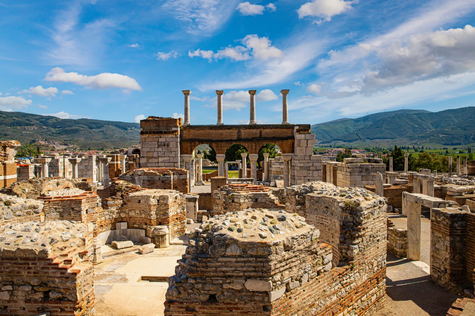Mentioned in the gospels are Sardis, Smyrna and Philadelphia, sites of 3 of the seven churches of revelation. The capital of the Lydian Kingdom Sardis is where coins were first minted and it was here that Jesus wrote of the wealth of this city by saying ‘I know thy works, and thou hast a name, that thou livest, and art dead’. Smyrna suffered and was persecuted for not worshipping the Roman Emporer and at Philadelphia mentioned in Revelations 3: 12 are the remains of the Byzantine Basilica and parts of what is left of the city wall.