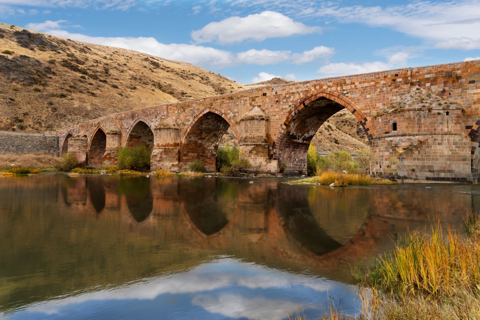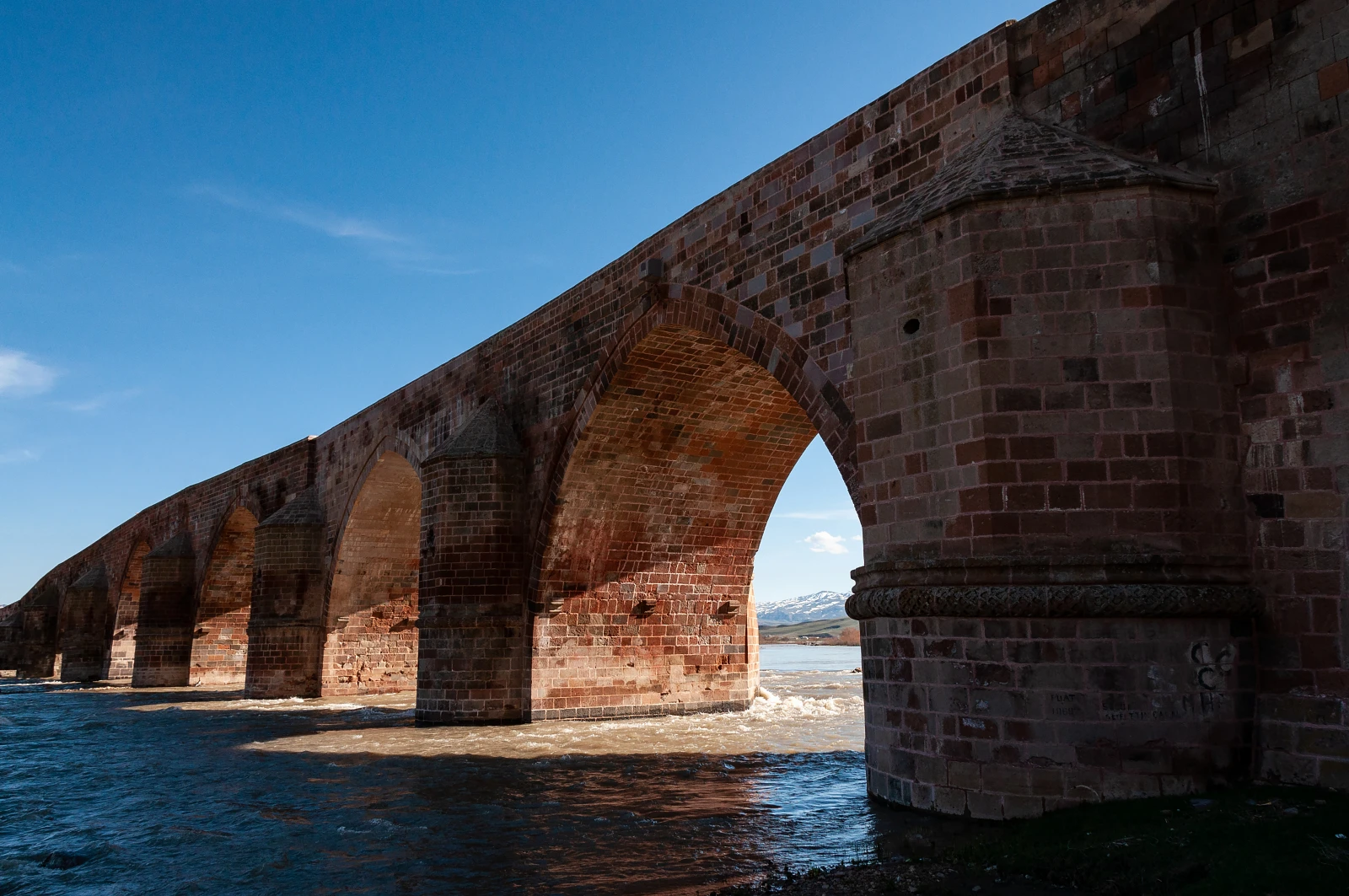 We now follow the Aras River west through the First World War battlefield of Sarikamis, and along the gorge of the river Aras via magical scenery of fields of gorse and fern, pristine river beds and deep ravines by the beautiful six-arched Cobandede Bridge and into Erzurum.